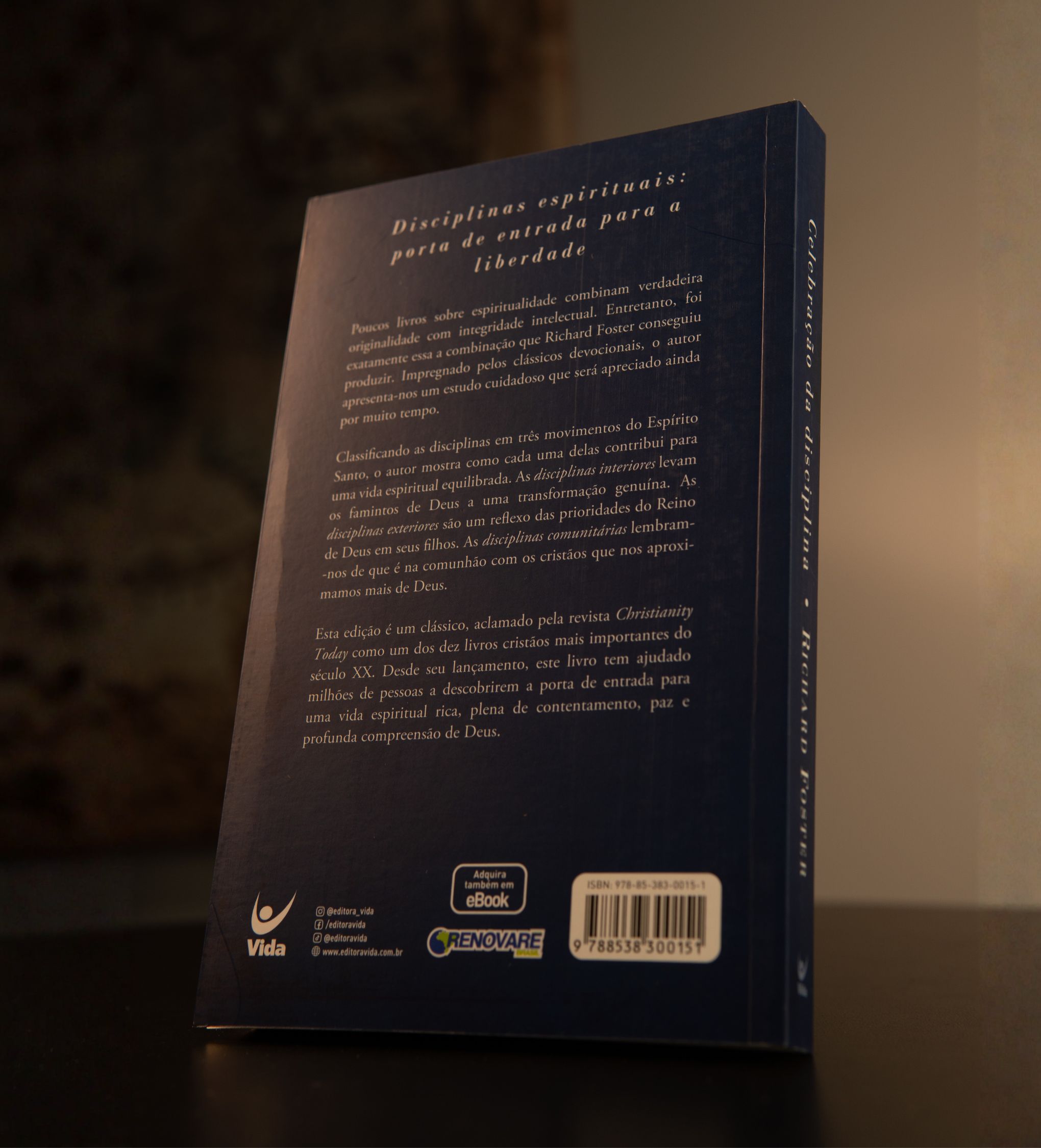 Poucos livros sobre espiritualidade combinam verdadeira originalidade com integridade intelectual. Entretanto, foi exatamente essa a combinação que Richard Foster conseguiu produzir. Impregnado pelos clássicos devocionais, o autor apresenta-nos um estudo cuidadoso que será apreciado ainda por muito tempo. Classificando as disciplinas em três movimentos do Espírito Santo, o autor mostra como cada uma delas contribui para uma vida espiritual equilibrada. As disciplinas interiores levam os famintos de Deus a uma transformação genuína. As disciplinas exteriores são um reflexo das prioridades do Reino de Deus em seus filhos. As disciplinas comunitárias lembram-nos de que é na comunhão entre os cristãos que nos aproximamos mais de Deus. A presente edição comemora o aniversário de 30 anos de sua primeira publicação em 1978. Um clássico aclamado pela revista Christianity Today como um dos dez livros cristãos mais importantes do século XX. Desde seu lançamento, este livro ajudou milhões de pessoas a descobrirem a porta de entrada para uma vida espiritual rica, plena de contentamento, paz e profunda compreensão de Deus.