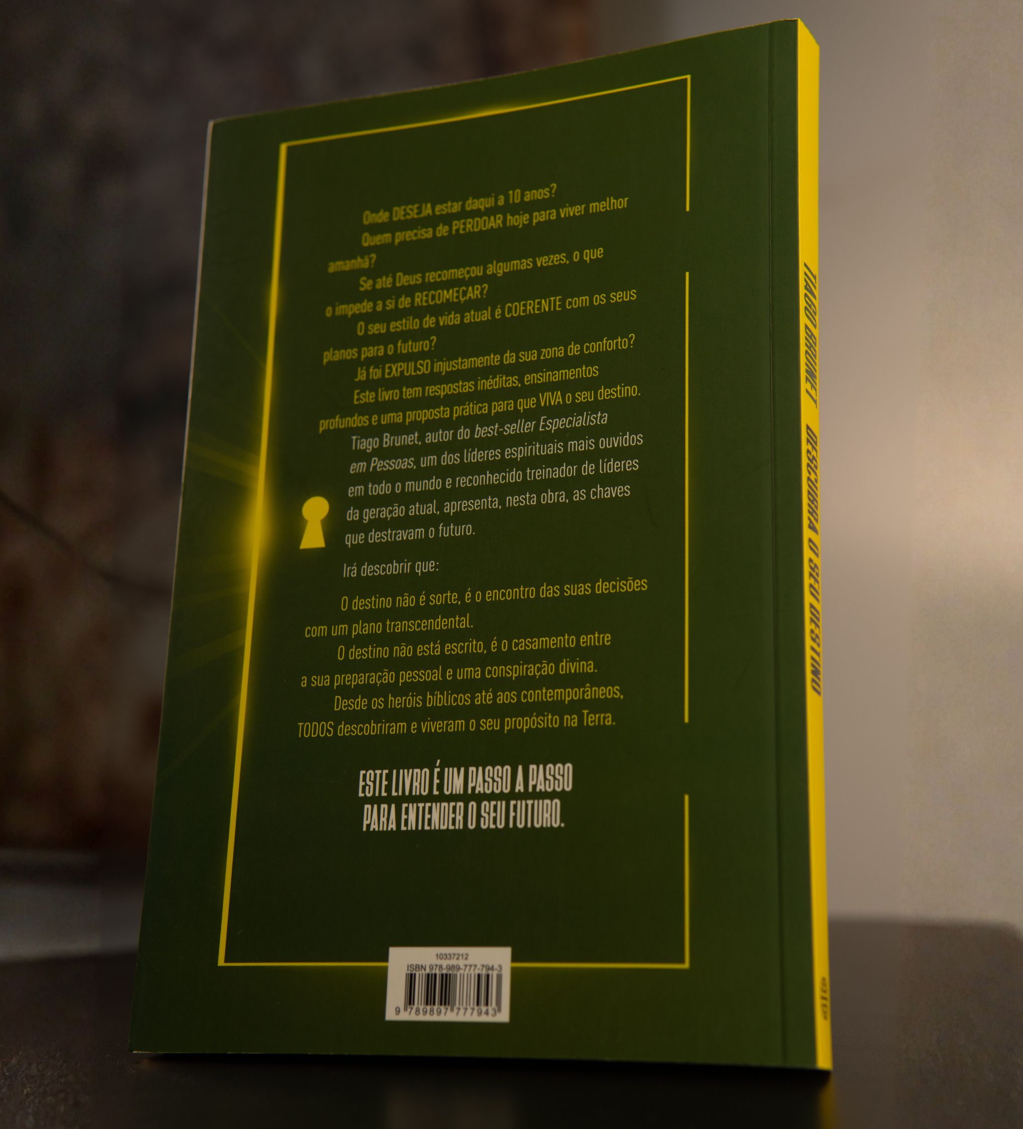 Onde deseja estar daqui a 10 anos? Quem precisa de perdoar hoje para viver melhor amanhã? Se até Deus recomeçou algumas vezes, o que o impede a si de recomeçar? O seu estilo de vida atual é coerente com os seus planos para o futuro? Já foi expulso injustamente da sua zona de conforto? Este livro tem respostas inéditas, ensinamentos profundos e uma proposta prática para que viva o seu destino. Tiago Brunet, autor do best-seller Especialista em Pessoas, um dos líderes espirituais mais ouvidos em todo o mundo e reconhecido treinador de líderes da geração atual, apresenta, nesta obra, as chaves que destravam o futuro. Irá descobrir que: O destino não é sorte, é o encontro das suas decisões com um plano transcendental. O destino não está escrito, é o casamento entre a sua preparação pessoal e uma conspiração divina. Desde os heróis bíblicos até aos contemporâneos, todos descobriram e viveram o seu propósito na Terra. ESTE LIVRO É UM PASSO A PASSO PARA ENTENDER O SEU FUTURO.