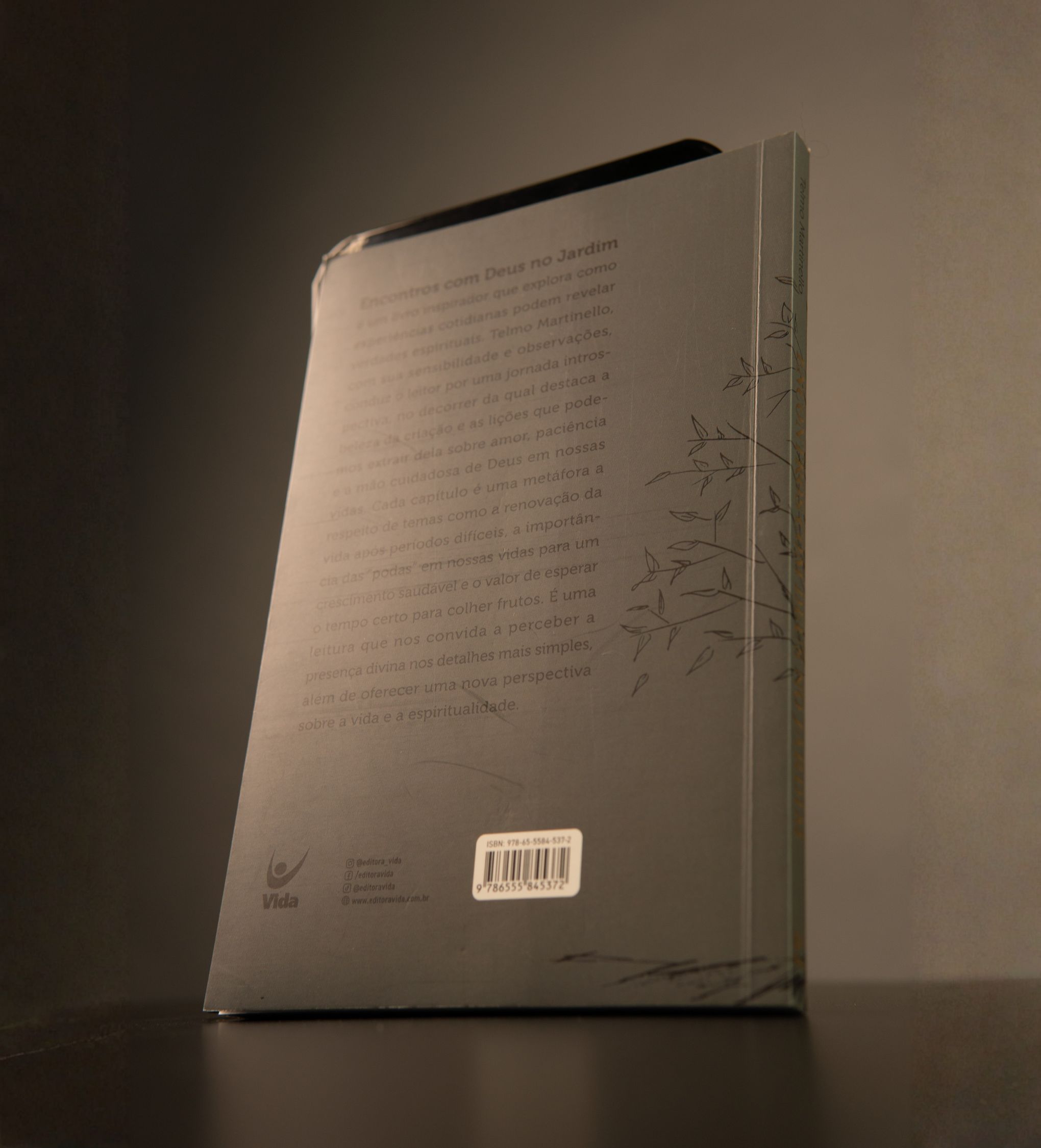 Encontros com Deus no Jardim é um livro inspirador que explora como experiências cotidianas podem revelar verdades espirituais. Telmo Martinello, com sua sensibilidade e observações, conduz o leitor por uma jornada introspetiva, no decorrer da qual destaca a beleza da criação e as lições que podemos extrair dela sobre amor, paciência e a mão cuidadosa de Deus em nossas vidas. Cada capítulo é uma metáfora a respeito de temas como a renovação da vida após períodos difíceis, a importância das “podas” em nossas vidas para um crescimento saudável e o valor de esperar o tempo certo para colher frutos. É uma leitura que nos convida a perceber a presença divina nos detalhes mais simples, além de oferecer uma nova perspetiva sobre a vida e a espiritualidade.
